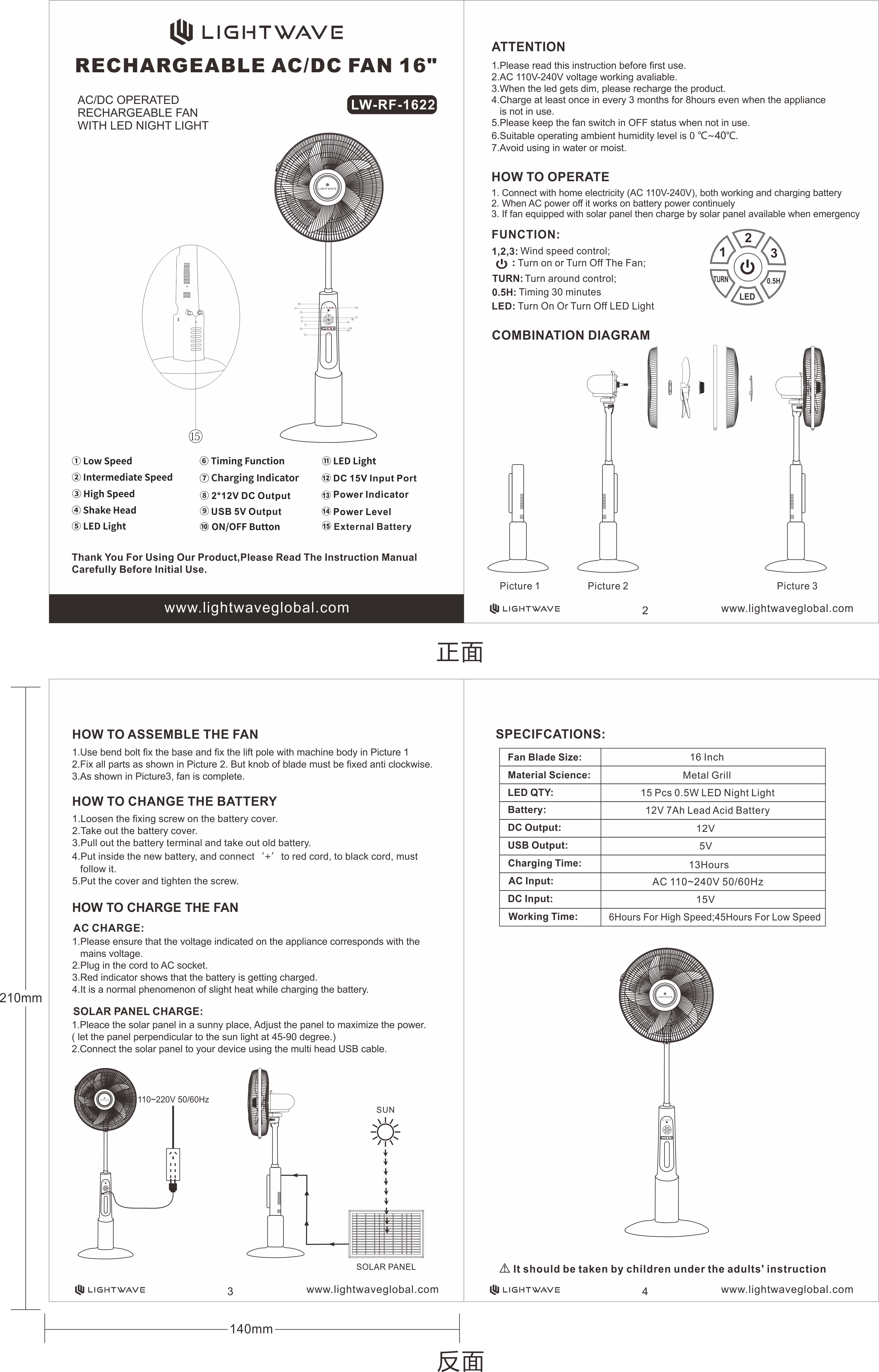 Lightwave 16-Inch Rechargeable Fan (LW-RF-1622)