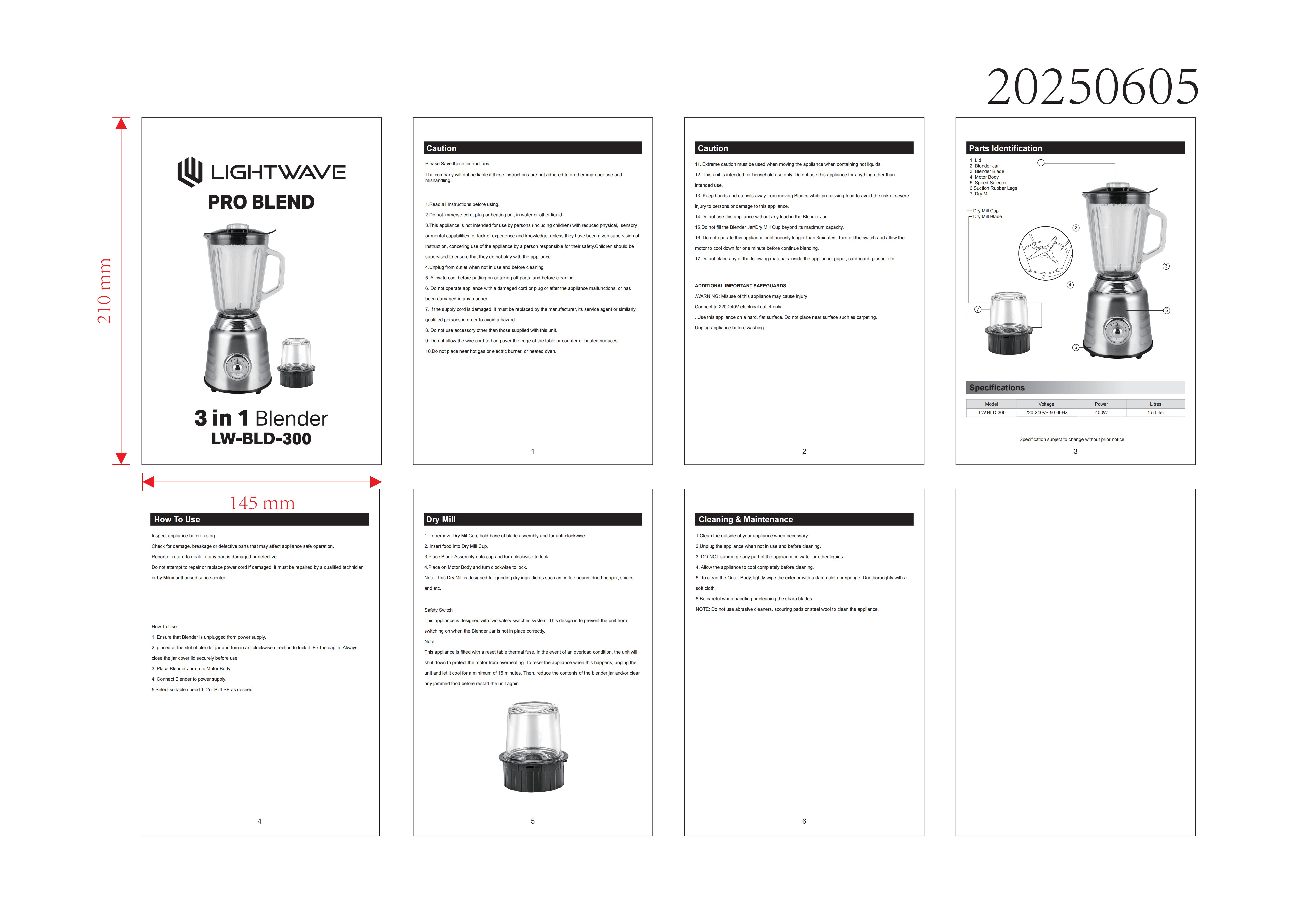 The Lightwave LW-BLD-300 3-in-1 Blender is a modern, high-performance kitchen appliance designed to deliver versatility, convenience, and efficiency. Built with premium materials and thoughtful engineering, it is perfect for preparing a wide range of recipes including smoothies, juices, soups, sauces, spices, and ground ingredients. With its stylish stainless steel body and multi-functional attachments, the LW-BLD-300 brings professional-level performance to everyday cooking.