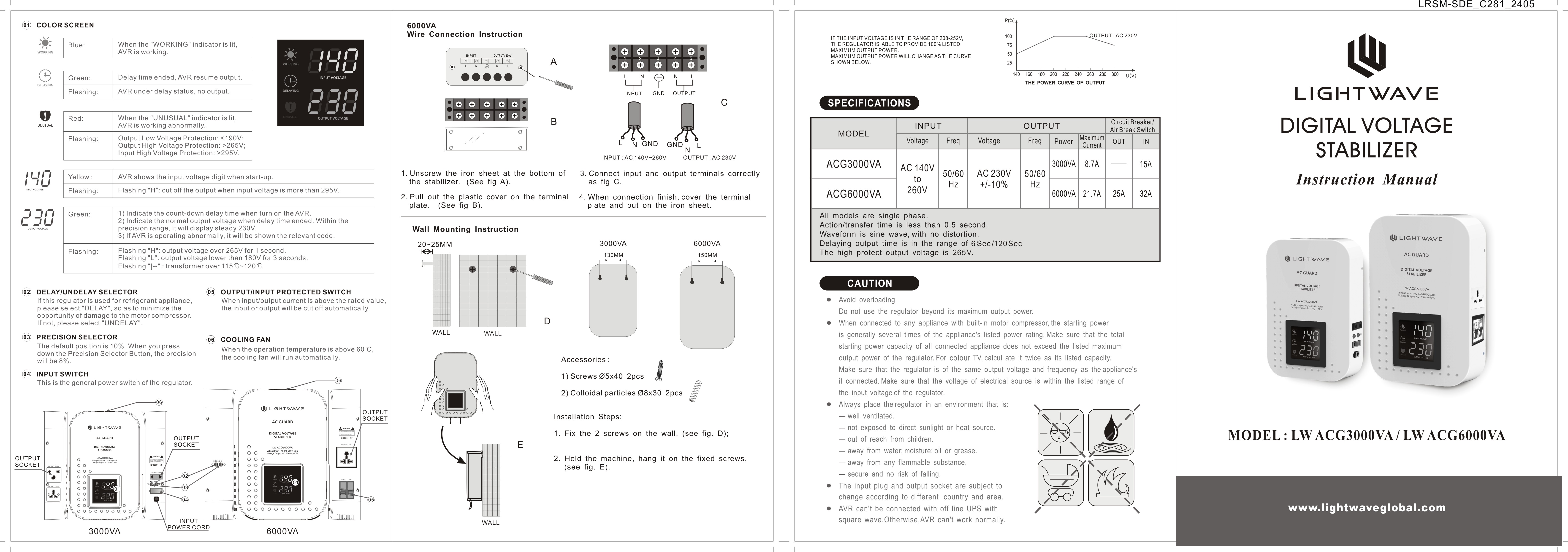 Ensure stable power for your high-load appliances with the Lightwave LW-ACG6000VA 6000VA Voltage Regulator. It features wide voltage input, dual delay settings, stability control, and full protection against overvoltage, low voltage, and overheating—ideal for home, commercial, or industrial use.Read More